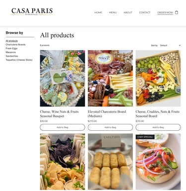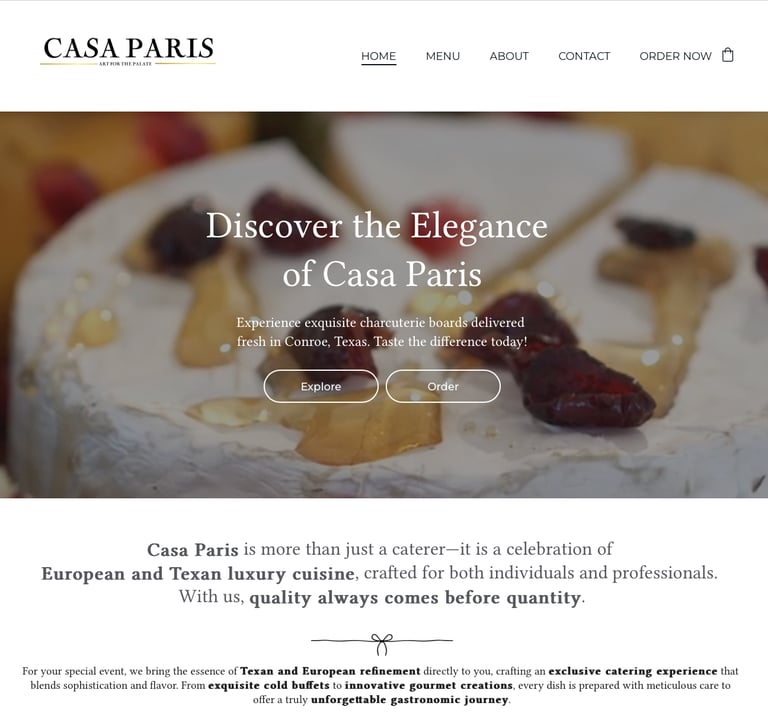 TheCasaParis.com represents Casa Paris, a gourmet catering and culinary experience business known for its premium European-inspired offerings, elegant charcuterie boards, and personalized catering services. The goal of the project was to modernize the website to reflect the brand’s high-end positioning, improve search visibility, and create a digital experience that resonated with both casual visitors and serious event planners.