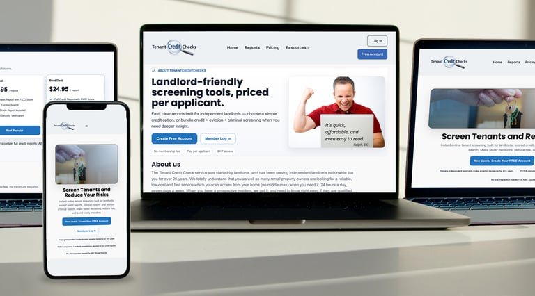 TenantCreditChecks.com is a tenant screening platform designed to help landlords access credit reports and background checks.