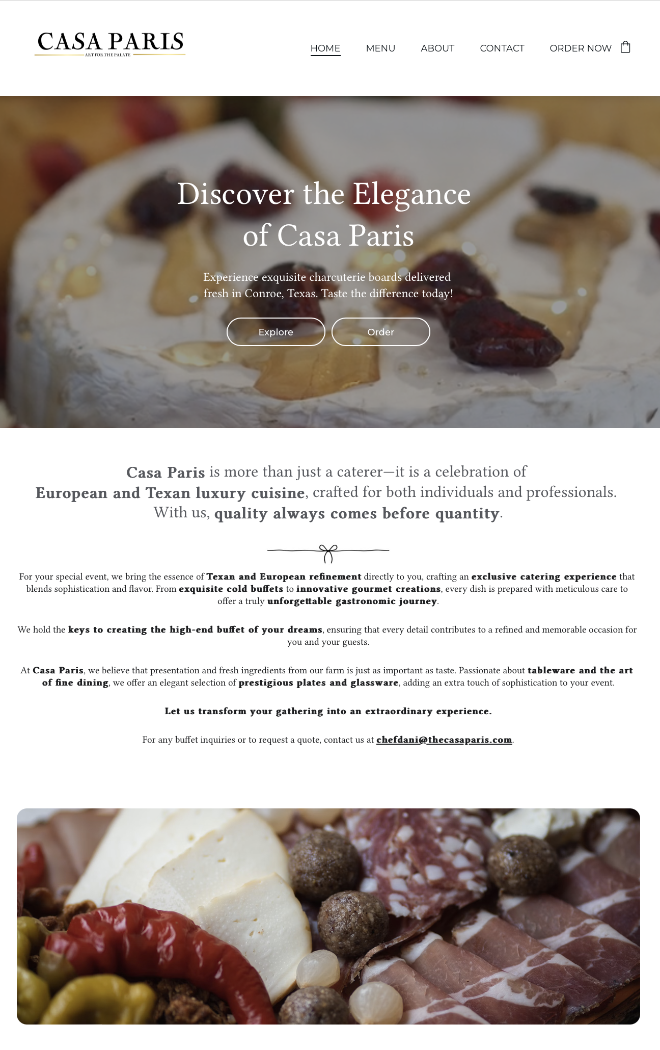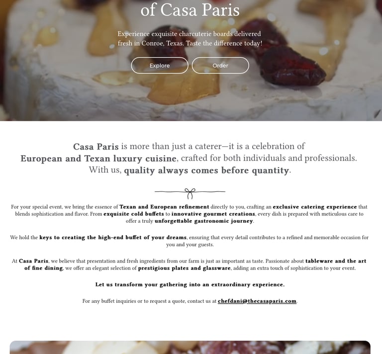 TheCasaParis.com represents Casa Paris, a gourmet catering and culinary experience business known for its premium European-inspired offerings, elegant charcuterie boards, and personalized catering services. The goal of the project was to modernize the website to reflect the brand’s high-end positioning, improve search visibility, and create a digital experience that resonated with both casual visitors and serious event planners.