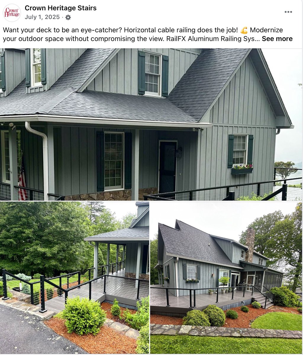 • Developed a social content plan that showcased Crown Heritage’s products through visual storytelling — before/after installations, craftsmanship highlights, and product demos.